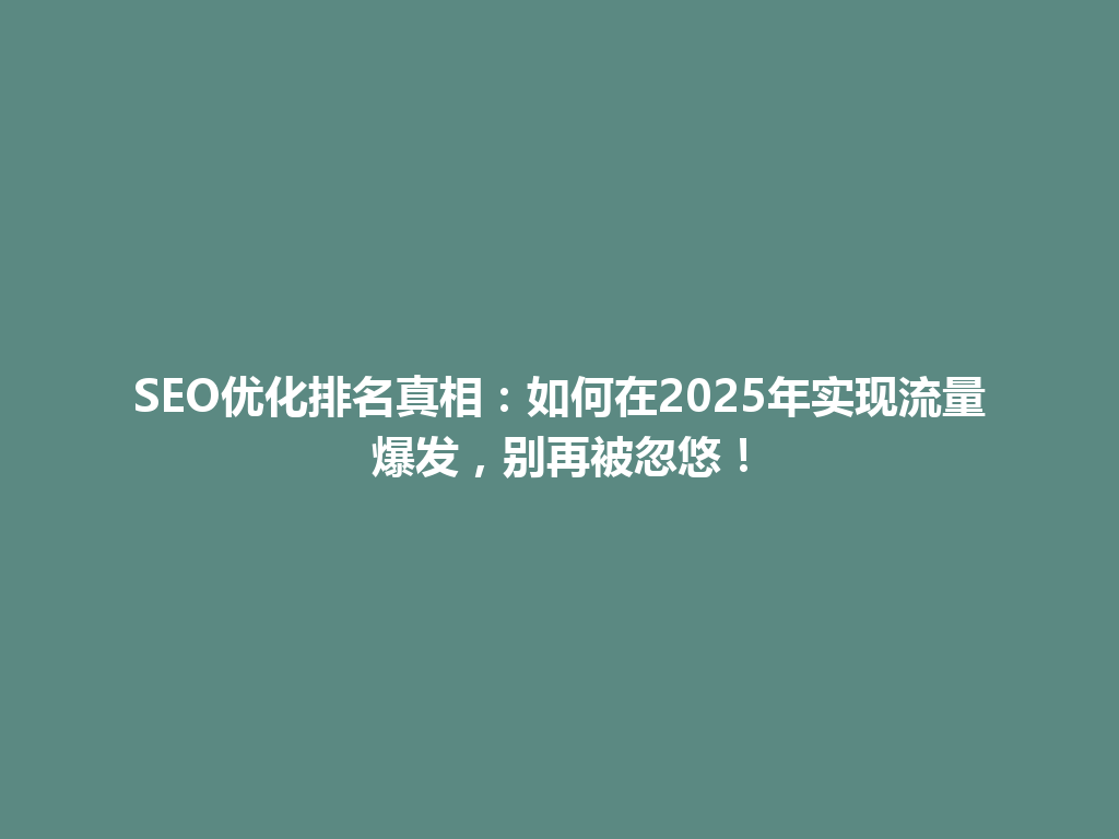 而言,想要在2025年实现流量爆发,企业需要摒弃对SEO的误解,全面提升优化策略,包括关键词优化、内容质量提升和链接建立。通过科学有效的方法,才能在竞争中脱颖而出,稳步提升SEO优化排名。